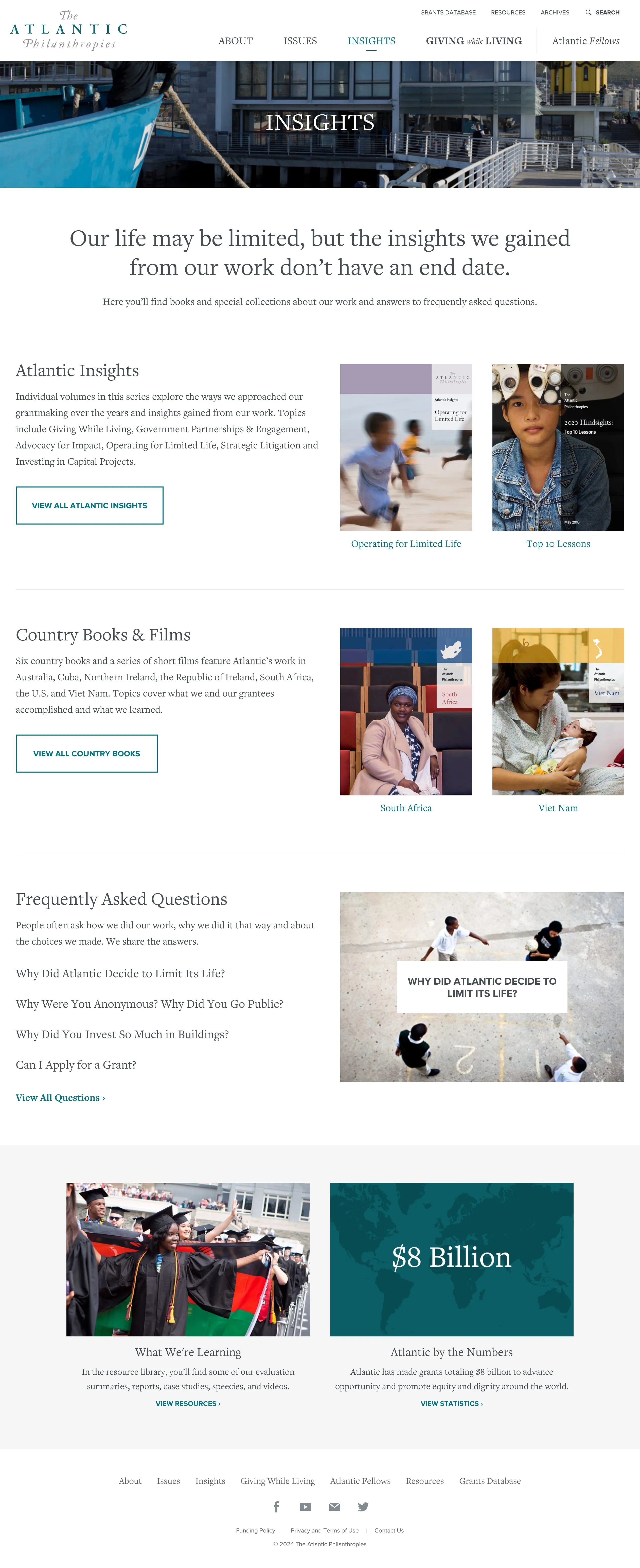 WordPress theme development for The Atlantic Philanthropies, a private foundation that made grants through its program areas.