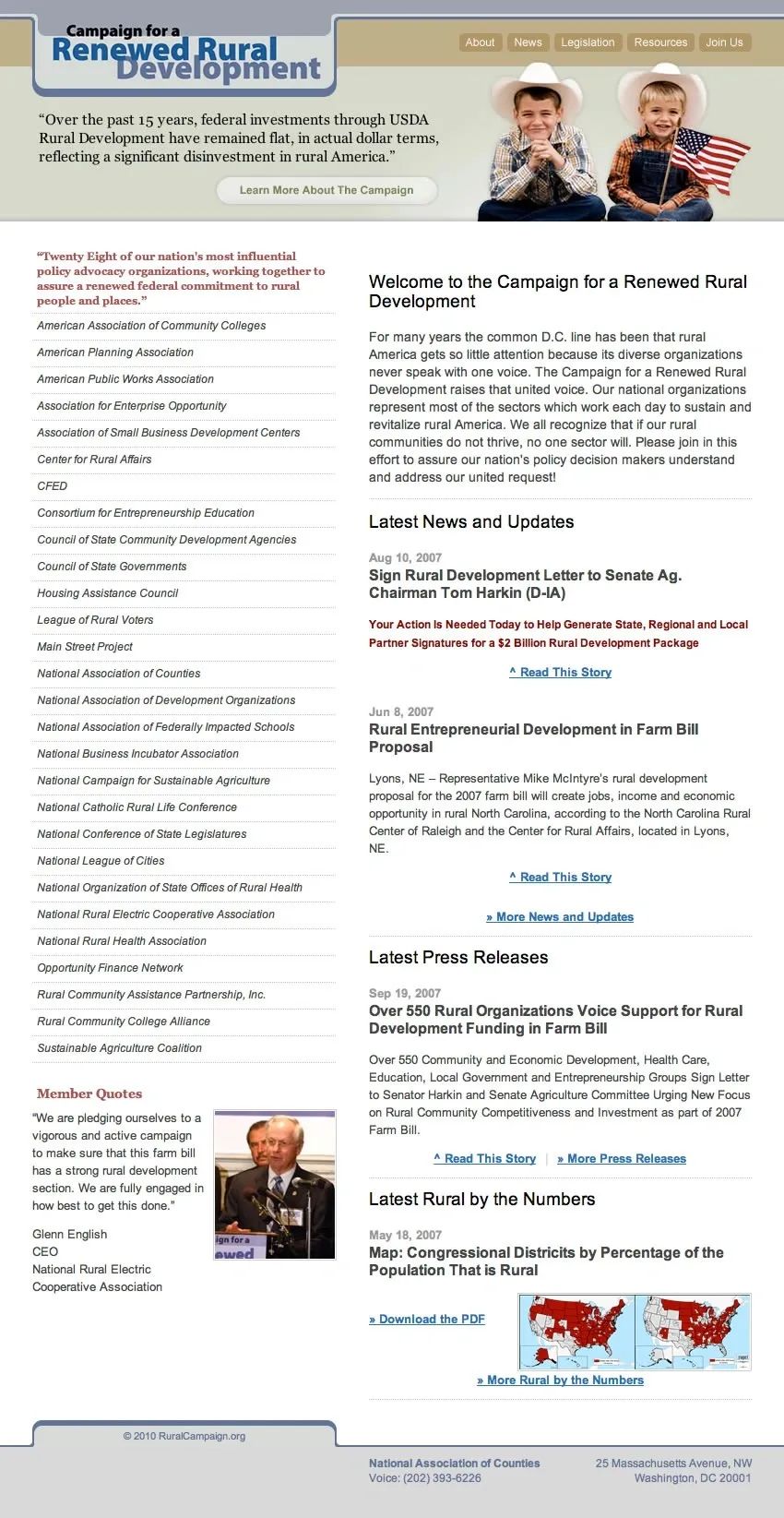 The Campaign for a Renewed Rural Development site was initially developed as an information source for the 2007 Farm Bill. I designed and developed the site on top of a content management system that allowed them flexible control over adding a variety of content.