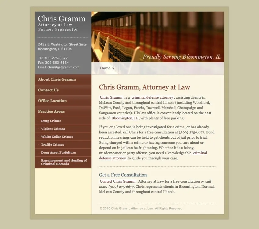 Chris Gramm is an attorney in Bloomington, IL. I designed and built a simple site that allows him to list his services for potential clients.