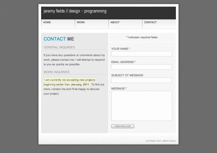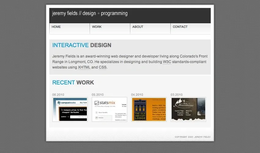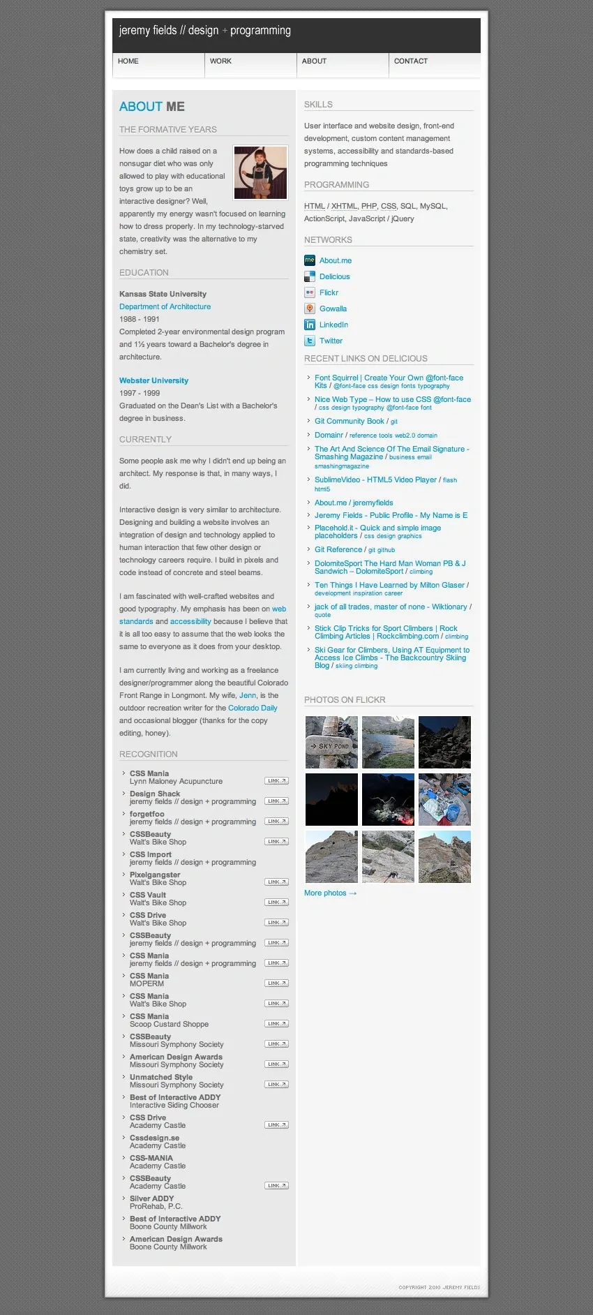 This was the first version of my portfolio. Launched in 2005, it received recognition from CSSBeauty, Design Shack, CSS Import and CSS Mania.