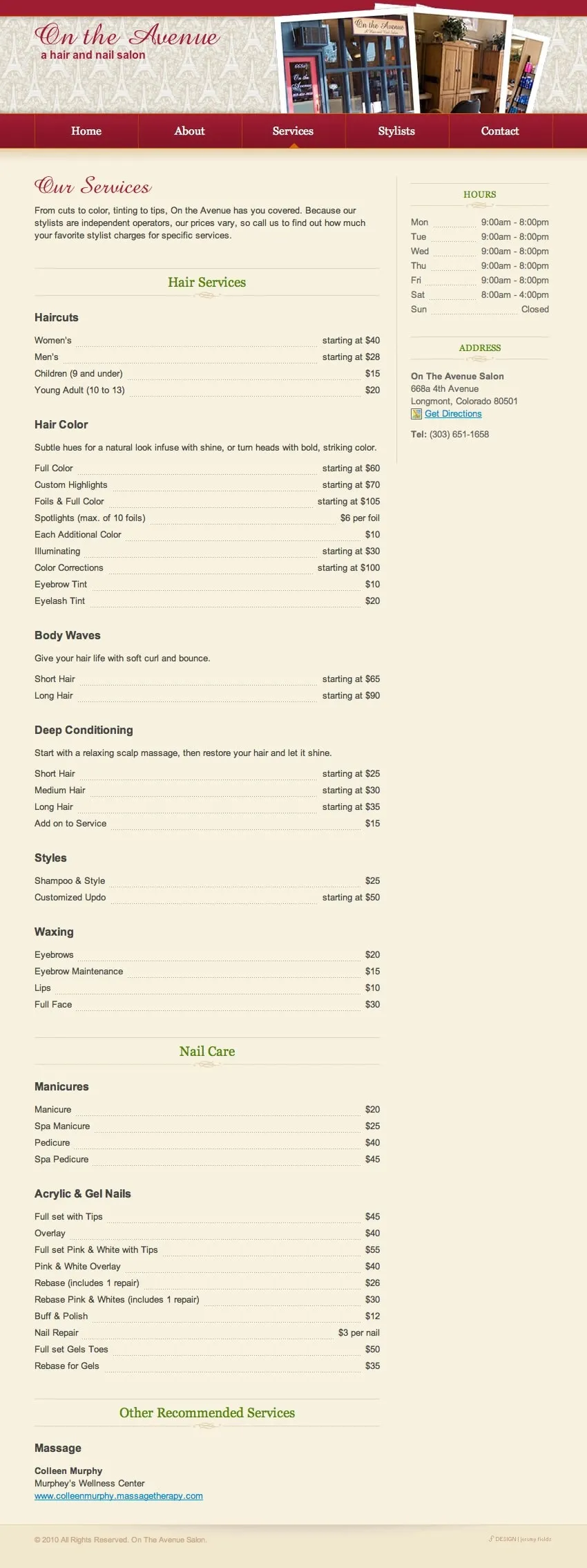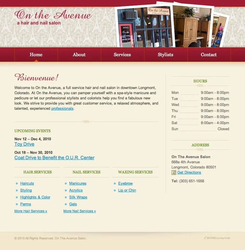 On the Avenue is an independently run hair and nail salon in Longmont, CO. I designed and built a site to display their services and stylists. I also built a simple content management system that allows them to maintain their stylists and an events list.